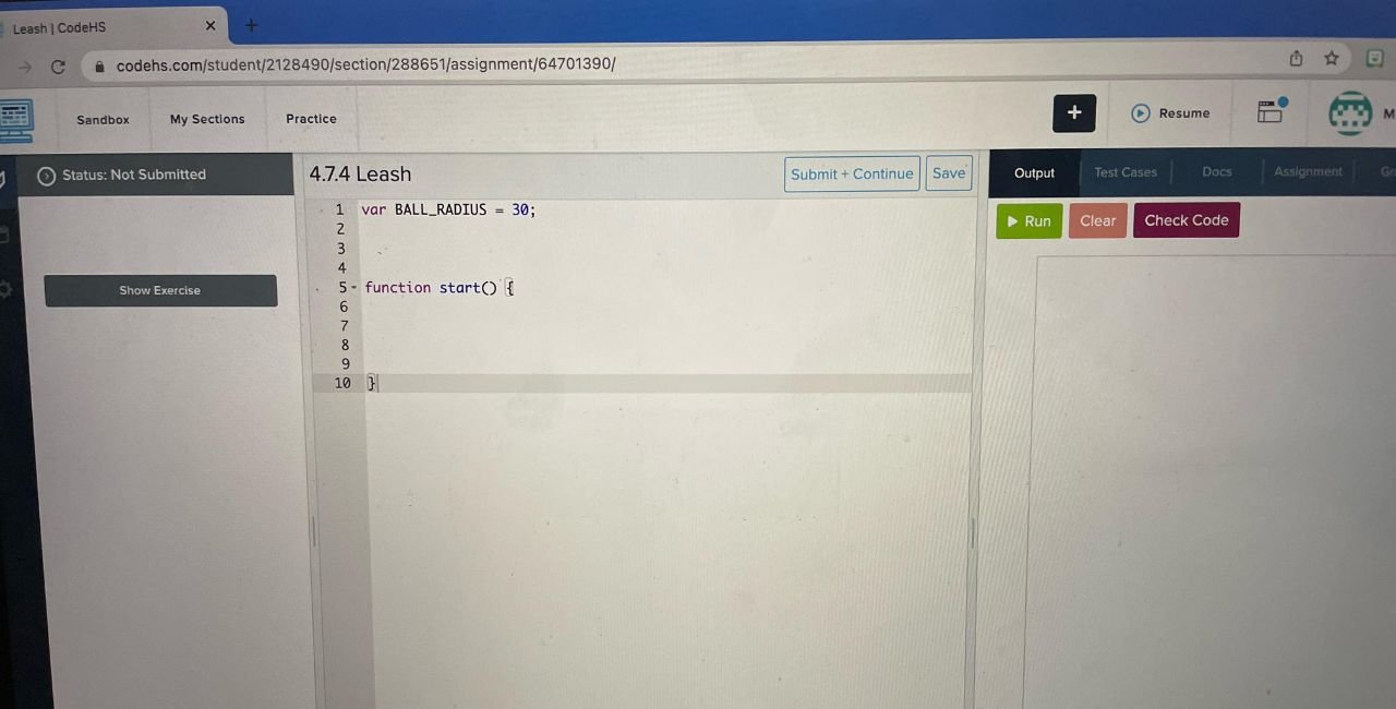 If you seek 9.7.4 leash codehs answers, you land in the right spot. This guide breaks down the exercise from CodeHS, a top platform for learning code. We focus on the 9.7.4 Leash task in the JavaScript course. It tests your skills in drawing lines and handling mouse moves. Many students get stuck here, but with clear steps, you can solve it quick. We draw from real user talks and official course details to give you solid help.