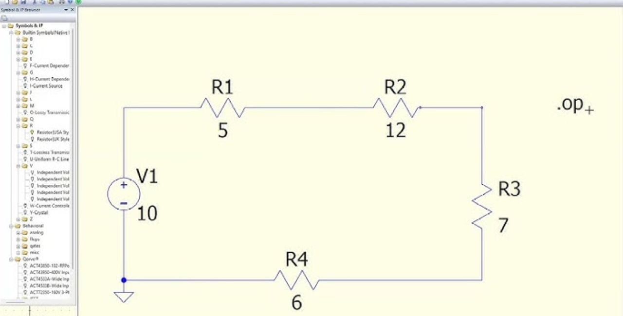 - Add ground. Drag from Passives > Ground. Name it “0”.
